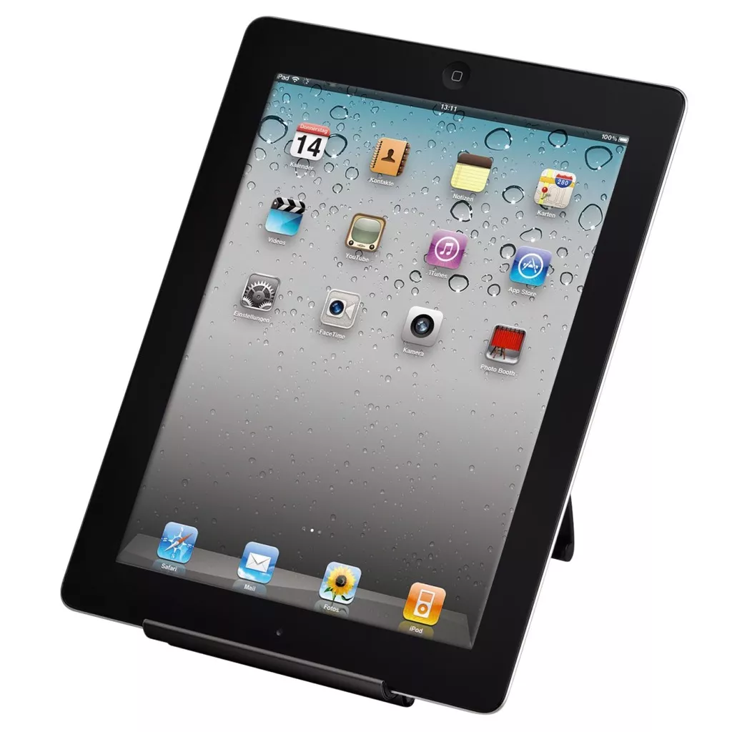An ideal accessory for easily using the iPad when on the go. This stand allows the viewing angle to be adjusted depending on your personal needs: flat for comfortable working and steep for relaxed surfing or watching videos. Can also be placed on your desk!