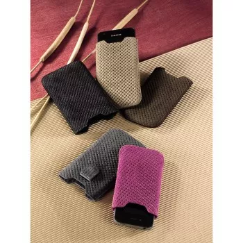 Thin Casing protecting the phone from scratches and dirt for storage in a bag or in the pockets of clothes. Exit tape for easy removal. Soft fleece lining. The lid is made of real skin.