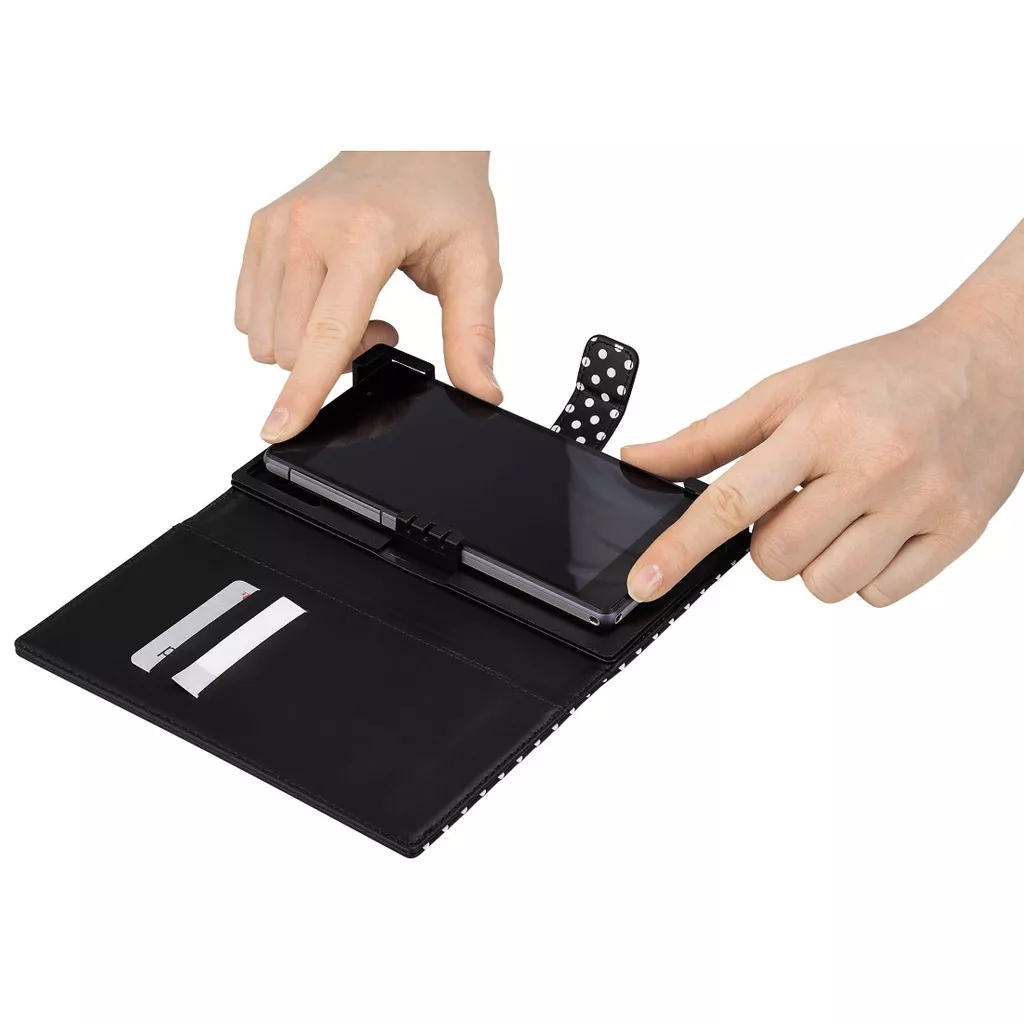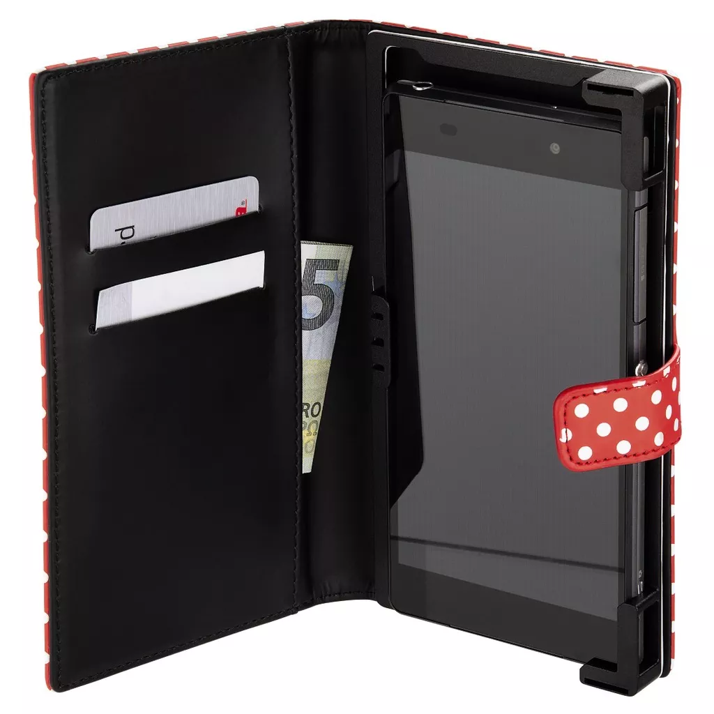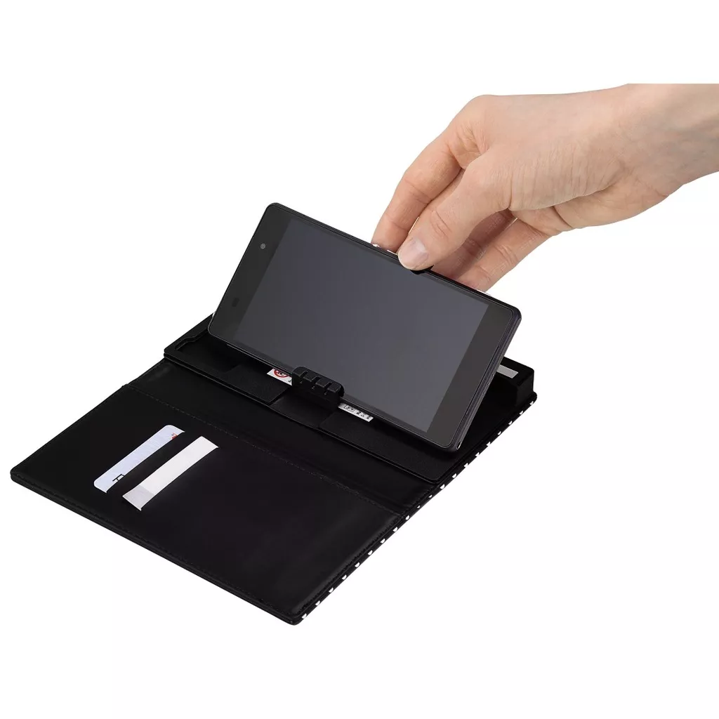 Thanks to the cheerful design, this brochure case is much more than just a smartphone case. It is available in a fashionable red and white color and houses some of your personal belongings. What’s more, the smartphone does not need to be removed from the calling, taking photos, etc.