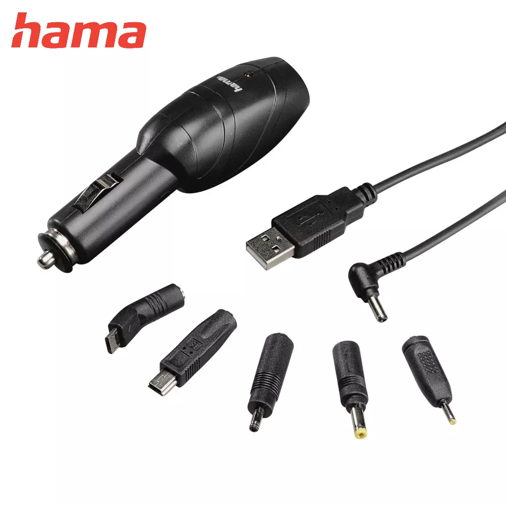HAMA car charger with USB output via (1.40 m) to DC 3.5 x 1.35 / 4.0 x 1.7 / 3.2 x0.9 / 2.35 x 0.75 and a mini USB Plug will ensure that you are always going in the right direction or you can listen to music