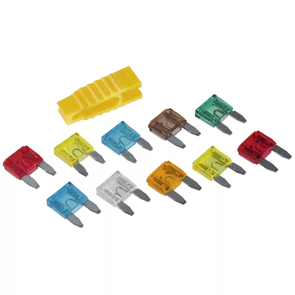 1 x 5 a, brown / 1 x 7.5 a, orange / 2 x 10 a, red / 2 x 15 a, blue / 2 x 20 a, yellow / 1 x 25 a, white / 1 x 30 a, green